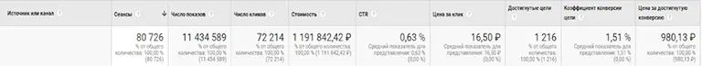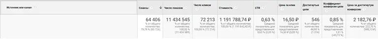 На примере данной кампании видно, что стоимость конверсии по атрибуции last click составляет 6 700,67 рублей, а по модели атрибуции SilverSite – 3 941,57 рублей и находится в пределах допустимого значения.