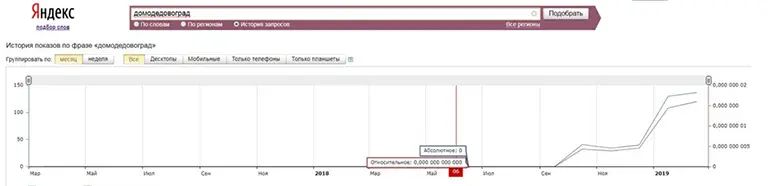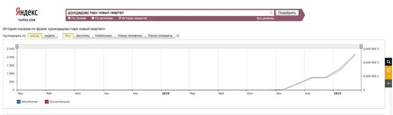 Нацелено рассматривает «Домодедово Парк. Новый квартал». Самые низкочастотные запросы, зато максимально целевая аудитория.