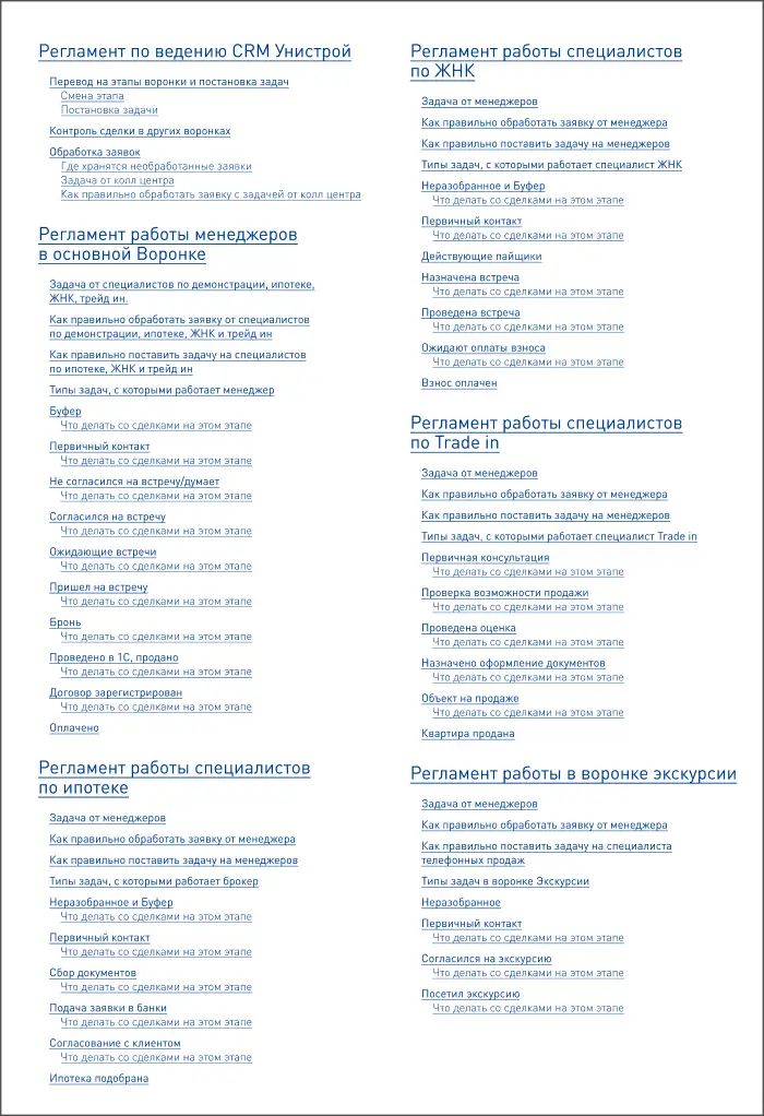 Регламент по ведению CRM состоит из 68 страниц. В нем описаны все действия менеджера от постановки задачи до личной встречи с клиентом