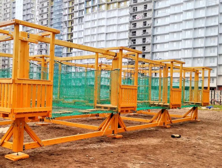 На придомовой территории уже установили предусмотренный проектом безопасный веревочный парк. В ближайшее время начнется устройство резинового покрытия для зон активити и монтаж детских городков.