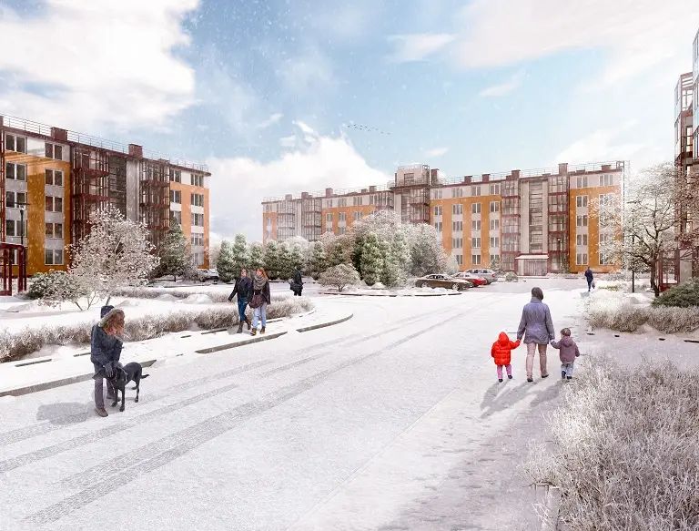 Квартал состоит из четырех домов на 383 квартиры. Во дворе спроектированы детская и спортивная площадки, площадка для отдыха и парковка на 155 машин. Квартирография содержит разные варианты планировок от компактных студий до 100-метровых трёхкомнатных. Во многих из них есть возможность объединить кухню с гостиной. Высота потолков в квартирах составляет 2.75 метра, а на пятом, мансардном, этаже – до 3.8.
