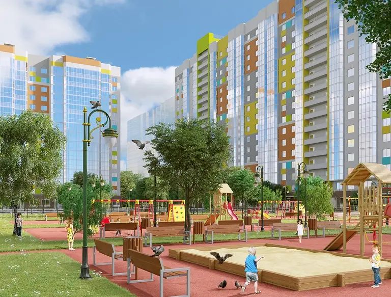 Преимущества комплекса: новый микрорайон, 8-18 этажей, 10 минут пешком до метро, удобный въезд на КАД, дизайнерская отделка холлов, детский сад во дворе, фитнесс-центр с двумя бассейнами, закрытый, охраняемый и благоустроенный двор, детские и спортивные площадки, подземный паркинг, рациональные планировки, включая европланировки.