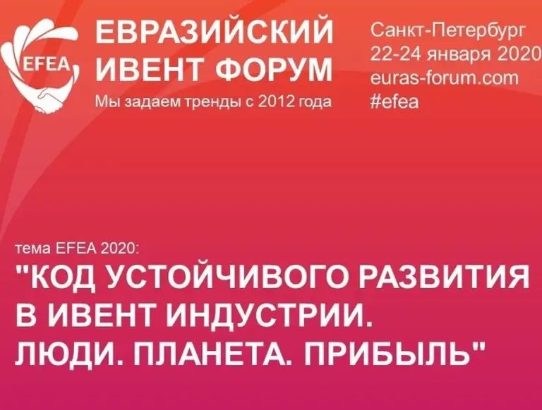 С 2012 года мероприятие ежегодно проводится в Санкт-Петербурге и задает тренды развития индустрии встреч. В 2020 году ключевая тема Евразийского Ивент Форума (EFEA) была названа «Код устойчивого развития в ивент индустрии. Люди. Планета. Прибыль».