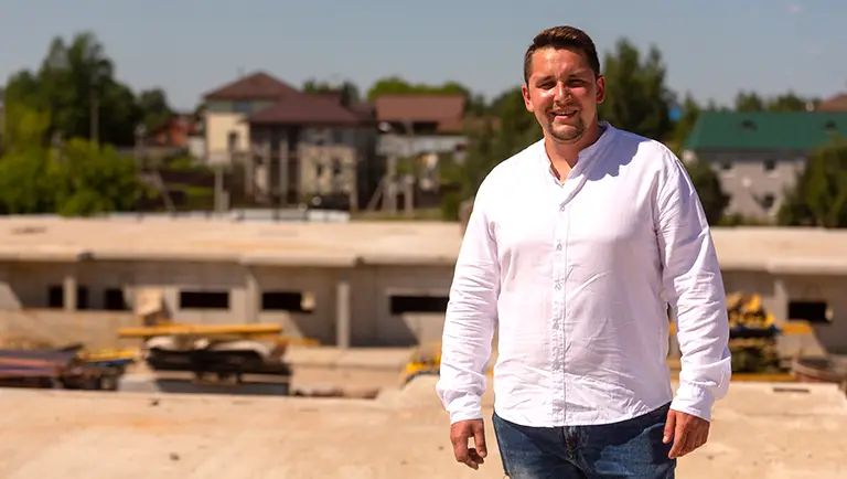 – Сейчас мы ведем строительство дома, срок сдачи объекта – III квартал 2021 года. Квартиры в жилом комплексе продаются по 214-ФЗ, то есть по договору долевого участия. Мы, по сути, делаем всё с нуля. Как видите, уже закончили фундамент и цокольный этаж.