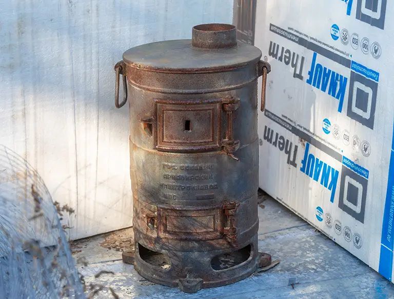 «Бонус» (в общей сложности 70 тыс. руб.) решено реализовать заменив скучный битумный шифер на модную и исключительно долговечную металлическую фальцевую кровлю и поставив в холле аутентичную военную буржуйку образца 1957 года (какой же загородный дом без печки?).
