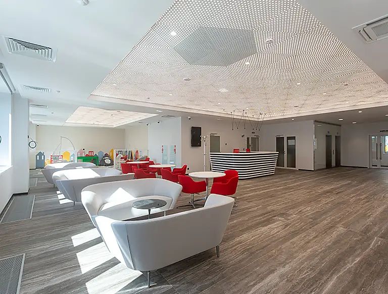 Клиентская зона спланирована таким образом, чтобы посетителям было максимально комфортно. В зоне ожидания располагаются функциональные переговорные комнаты и детская игровая для самых маленьких посетителей. Запланирована система электронной очереди, которая позволит по одному номеру посетить разных специалистов. Главный офис работает по принципу «одного окна»: покупка квартиры, ипотека, страхование, консультации юриста, услуги для инвесторов, служба клиентской поддержки.