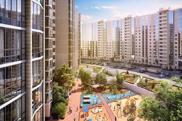 Отличительная особенность проекта и фирменный знак застройщика – парк отдыха во дворе, свободном от машин. В нем будет два зеленых сквера, зоны для занятий йогой, спортом, гамаки и лежаки, отдельная зона для выгула собак. В самом комплексе откроется спортивный зал и детский клуб. Все общественные пространства будут переданы в общую собственность жителей. В рамках проекта застройщик возведет также муниципальный детский сад на 180 мест с бассейном.