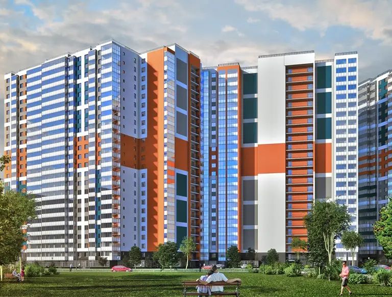 В составе 4 корпуса более чем на 185 тыс. кв. м жилья и два отдельно стоящих многоуровневых паркинга вместимостью до 2110 автомобилей.