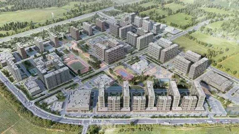 Застройщик обещает создать «новый неспальный район», рассчитанный на 20 тыс. человек. Первый этап в составе трех корпусов будет завершен осенью 2023 года.