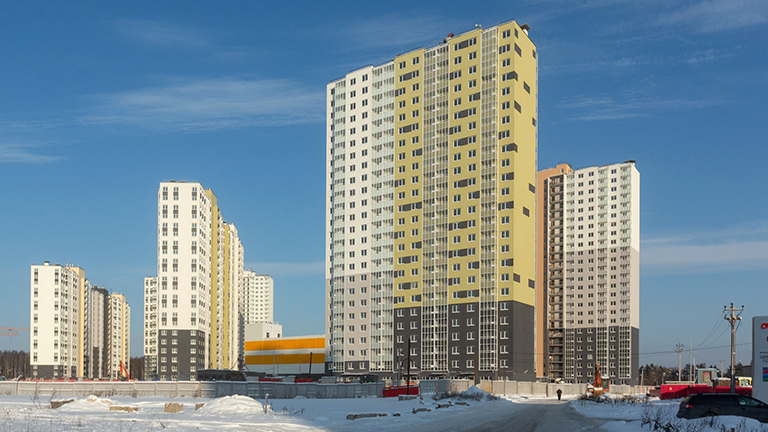 Проект-миллионник от «ЛСР» на 27 тыс. квартир состоит из панельных 17–25-этажных домов и реализуется за кольцевой автодорогой, на Муринской дороге. Это один из главных поставщиков жилья на местный рынок: только за прошлый год в продажу вышло около 3 тыс. квартир, это около 40% всех районных поступлений. О масштабе проекта лучше всего говорят планы застройщика по строительству социалки: 16 детсадов и 10 школ. Но это в будущем. Пока что сданы более двух десятков корпусов, еще с десяток – в стадии строительства.