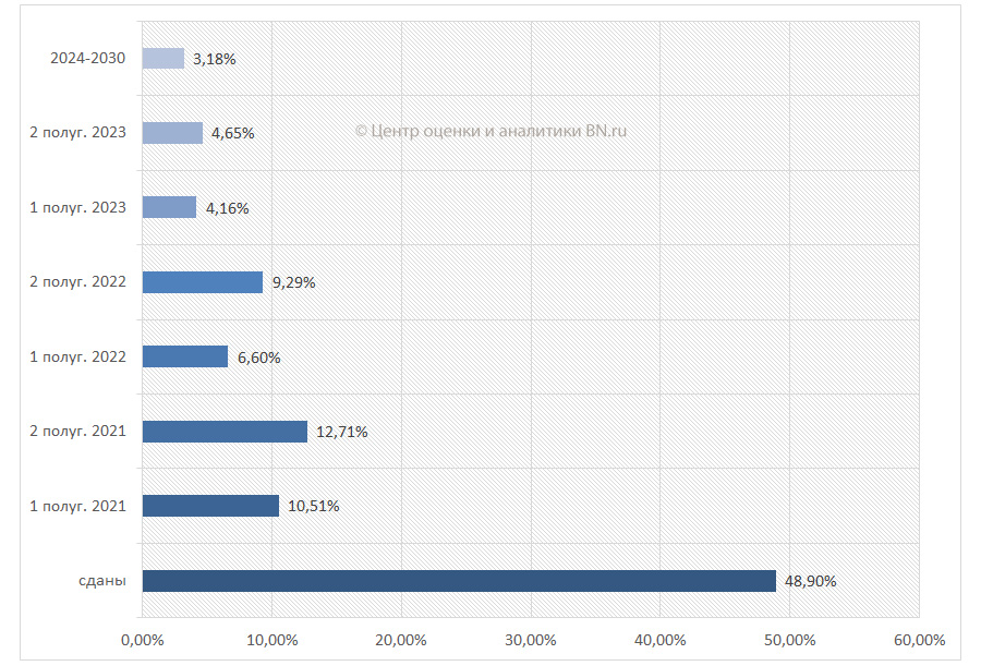 Сроки окончания строительства, % от общего количества строительных объектов в продаже