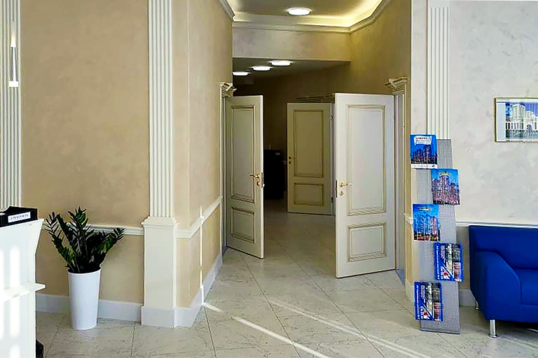 Площадь офиса – 295,8 квадратных метров. Его оформление выполнено по стандартам Компании в классическом стиле и перекликается с отделкой головного офиса.