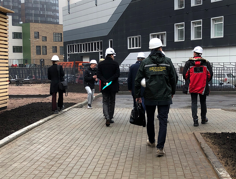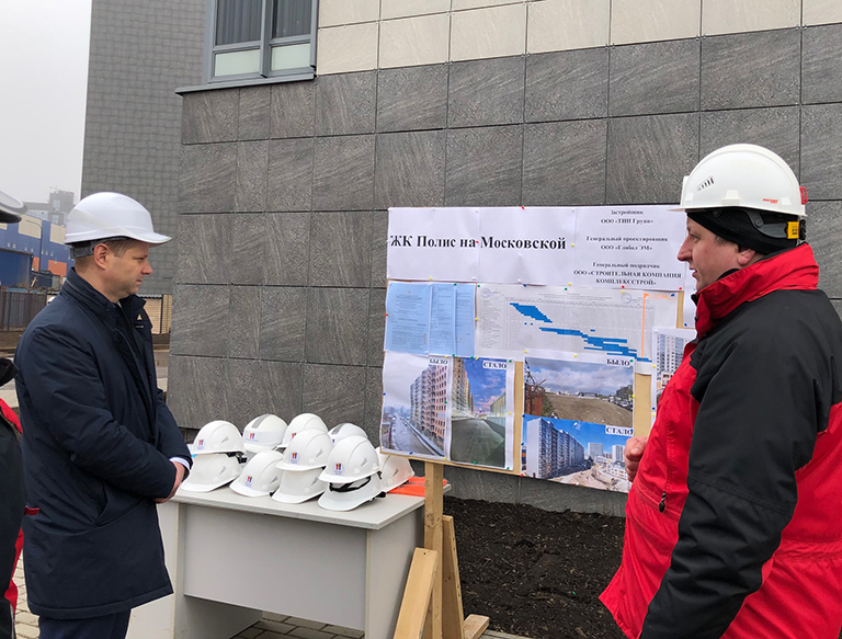 Проверка прошла в рамках личного контроля за возведением социальных и жилых объектов начальника Госстройнадзора Санкт-Петербурга Владимира Болдырева. Со стороны застройщика в мероприятии принял участие председатель Совета директоров ГК «Полис Групп» Андрей Сорочинский.