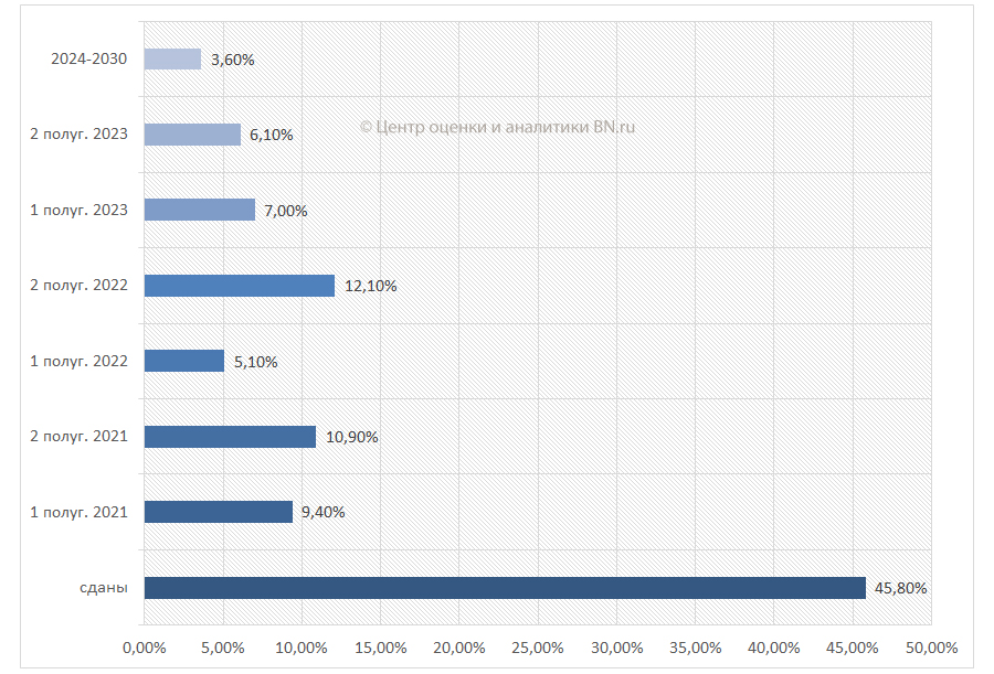 Сроки окончания строительства, % от общего количества строительных объектов в продаже