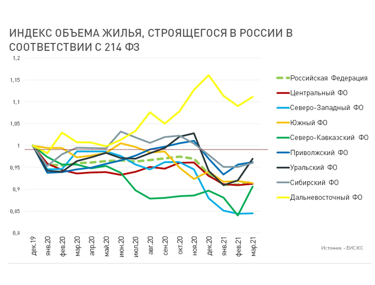 – Да, причем восстановление происходит неравномерно. Более всего заметен рост на Урале, Северном Кавказе, Приволжье, а в Центральном (Москва) и Северо-Западном (Санкт-Петербург) округах он почти отсутствует (см. график).