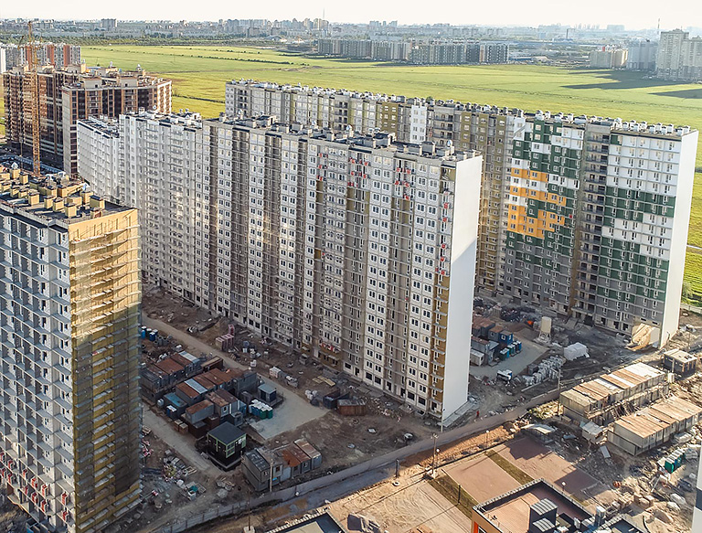 В настоящее время на объекте приступили к покраске фасадов. Напомним, фасадные решения для ЖК «Мой мир» разработало финское архитектурное бюро. Согласно концепции, дома будут выкрашены в сочные оттенки листвы и деревьев, за счет чего проект удачно впишется в окружающий пейзаж. Сейчас на лицевой стороне домов уже можно увидеть яркий орнамент. Общая готовность работ по отделке фасадов составляет 45%.