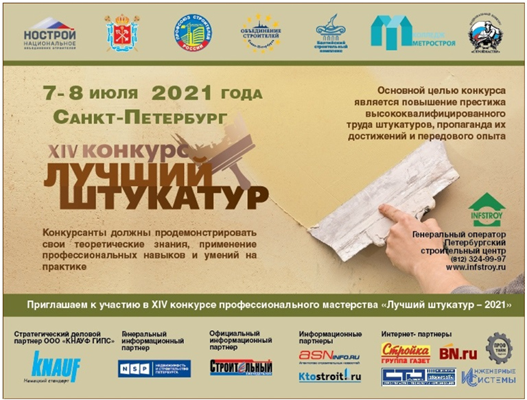 Награждение победителей и участников конкурса «Лучший штукатур - 2021» традиционно состоится в торжественной обстановке 8 июля 2021 г. в 16:00 ч. во Дворце труда по адресу: Площадь Труда, д. 4.