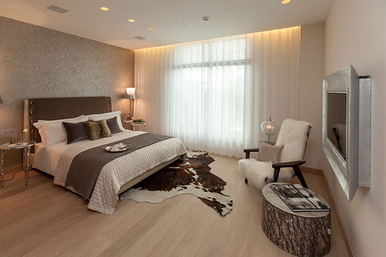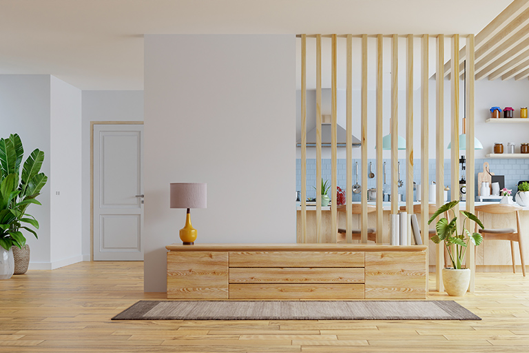 Хорошим дополнением в колористике интерьера будут темные цвета в акцентах, но ни в коем случае не черный. Отдайте предпочтение темно-коричневому цвету, ведь он более естественен в природе. Для того чтобы создать впечатление легкости и воздушности, выбирайте светлое дерево для мебели и декора – так вы сможете поддержать тему «природности» интерьера, но не перегрузить пространство.
