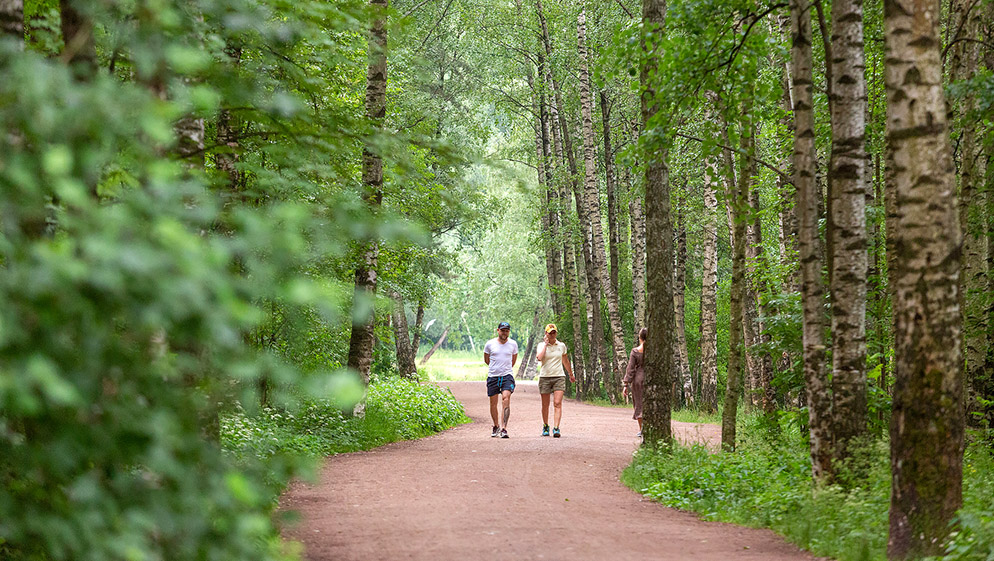 Недалеко от комплекса расположен крупнейший в Петербурге парк Сосновка. По сути, это огромный (больше 300 га) участок карельского хвойного леса с живописными водоемами, чудом сохранившийся посреди города. Чистый воздух, тенистые тропки, где поют птицы и резвятся белки, – до всего этого богатства можно за 15 минут дойти пешком либо еще быстрее домчаться на велосипеде или самокате. В Сосновке можно не только прогуливаться, но и заниматься спортом: теннисом, волейболом, шахматами и даже стрельбой. Кстати, панорамные квартиры, находящиеся на верхних этажах ЖК, имеют виды в том числе на знаменитый лесопарк.