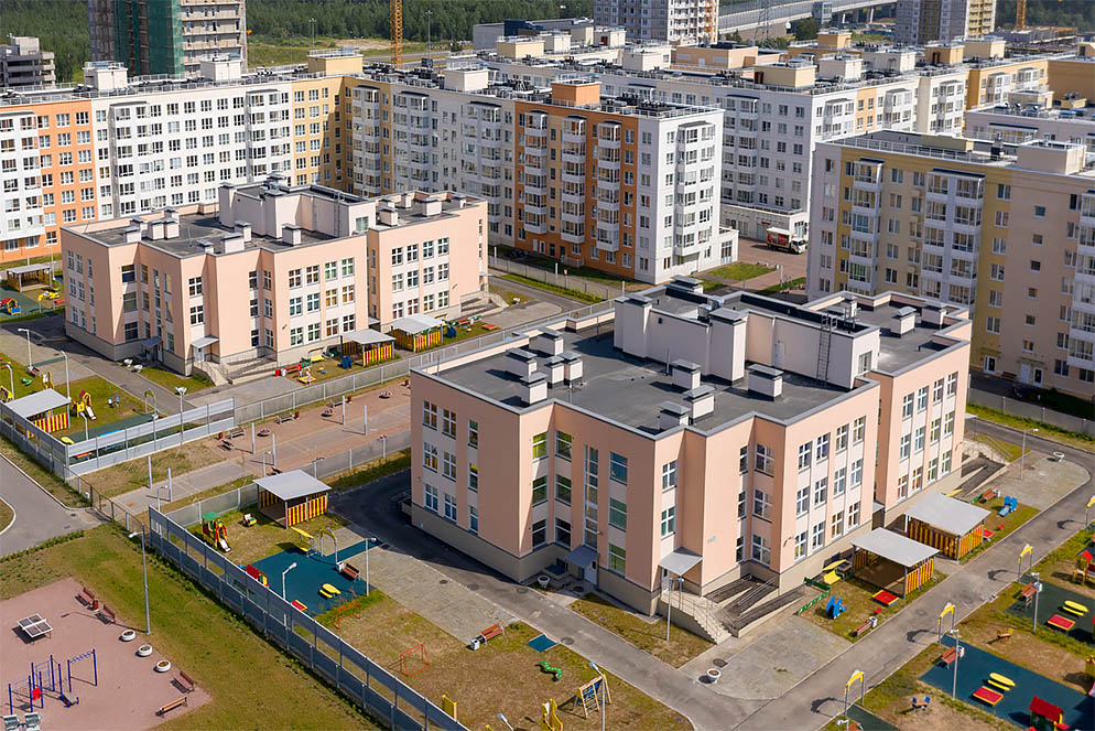 Рядом детские учреждения. Первый детский сад на 140 мест открылся в районе в апреле 2021 года, второй, такой же, был сдан в декабре 2020-го – его открытие запланировано на сентябрь 2021 года. Школа, построенная по индивидуальному проекту по заказу YIT, с бассейном и прекрасным стадионом, была передана в дар городу и начала работу в начале учебного 2019/2020 года.