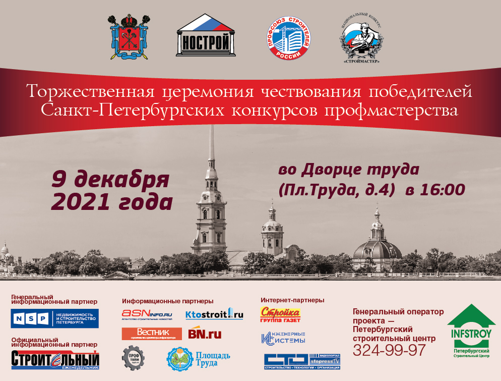 «Рад приветствовать организаторов и участников финального этапа конкурса «Строймастер–2021». В первую очередь, хотелось бы передать наилучшие пожеланияи поздравления победителям от координатора Ассоциации «Национальное объединение строителей» по Санкт–Петербургу Александра Ивановича Вахмистрова.