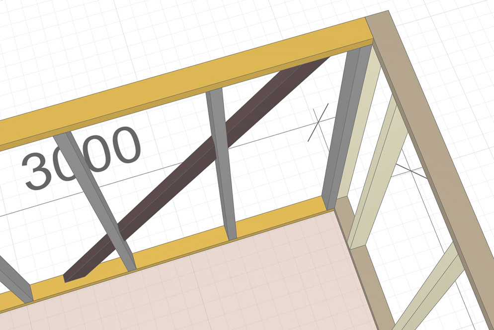 Другая, тоже очень важная деталь – укосины из дюймовки. Они не дают домику «сложиться» и придают каркасу геометрическую жесткость.