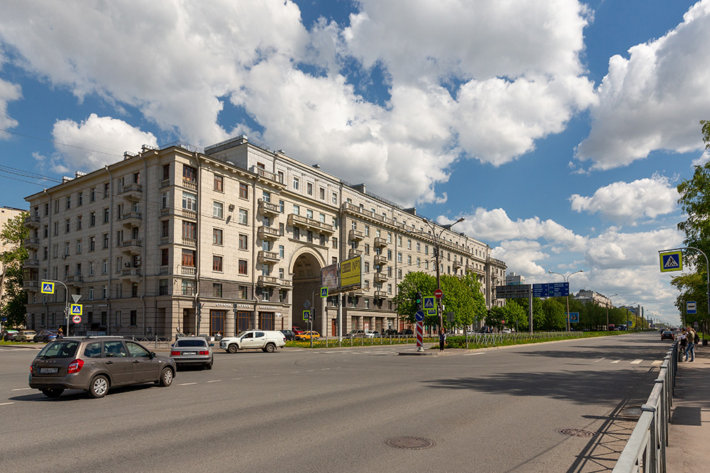 В южной части города жилая сталинская застройка заканчивается у метро «Московская», однако чуть дальше, на Московском шоссе, есть еще два красивейших здания той эпохи. Их адреса – Московское шоссе, 14, корп. 1, и Московское шоссе, 16, корп. 1.
