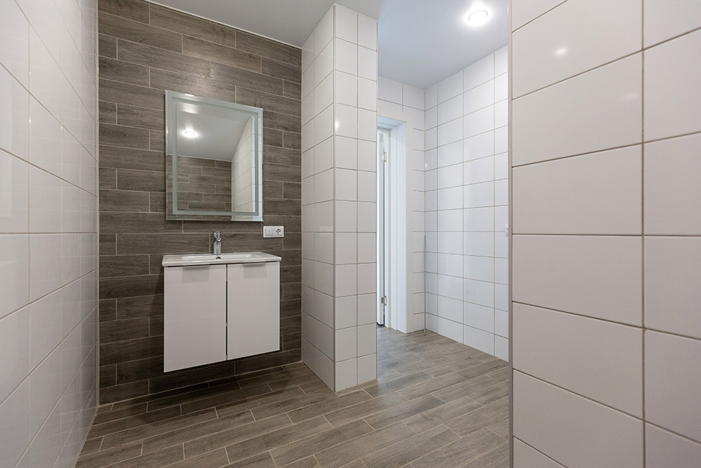 В техническом помещении расположена вся автоматика систем водоснабжения и отопления. Есть возможность поставить стиральную машину. Электрокотел обеспечивает теплоносителем теплые полы. Такая система в перспективе позволяет с минимальными затратами перейти на газ.