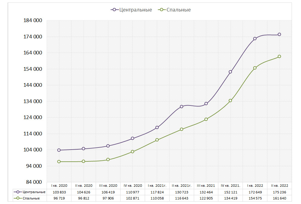При этом к началу лета цены замедлили бег и в комнатном сегменте. По данным аналитиков BN.ru, квадрат уже подешевел в большинстве центральных районов и некоторых спальниках. Так, в историческом центре, где сконцентрировано максимальное число коммуналок, динамика снижения отмечена в Василеостровском (−2%), Центральном (−1%) и Адмиралтейском (−1%) районах, а дорожает лишь Петроградский (5%). В большинстве спальных районов рост пока есть, причем в трех из них – довольно существенный: в Выборгском, Красногвардейском и Красносельском средние цены за второй квартал прибавили в пределах 7–9%. Подешевели комнаты пока лишь только в двух спальниках – Фрунзенском (−5%) и Московском (−3%).