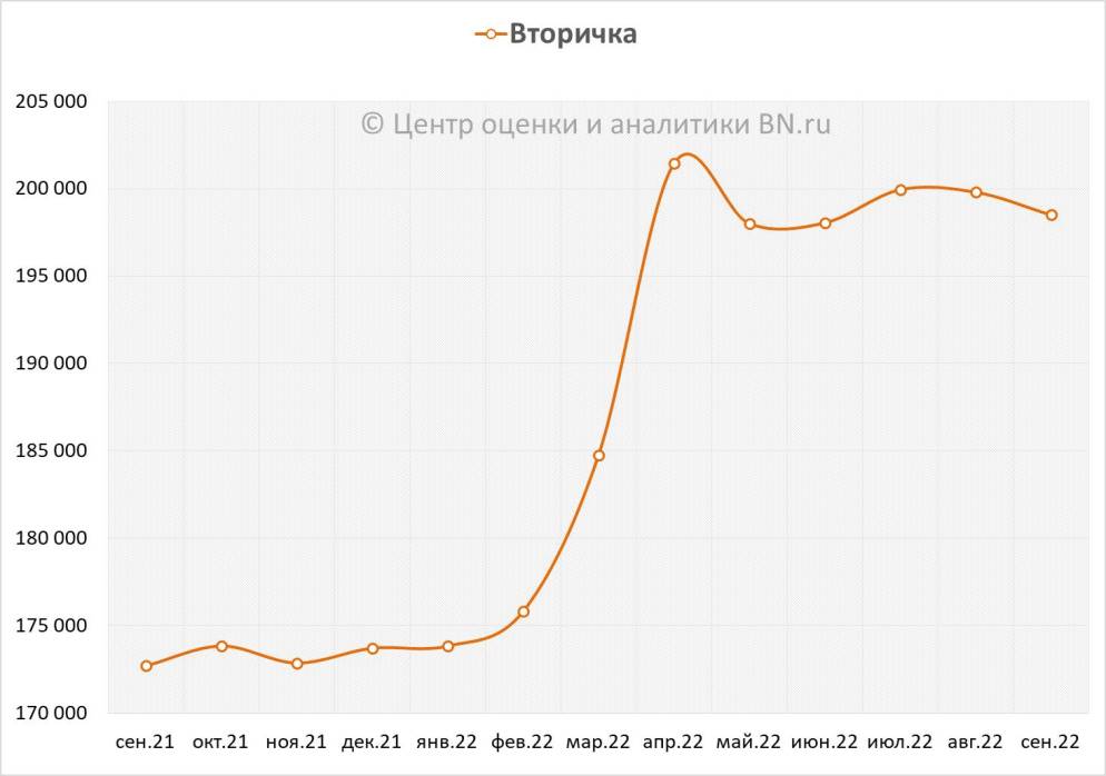 По данным Центра оценки и аналитики BN.ru, средняя цена предложения на вторичном рынке жилья Санкт-Петербурга в сентябре снизилась на 0,7% (это 1 304 руб. за кв. м) и к началу сентября составила 198,5 тыс. руб. за кв. м.