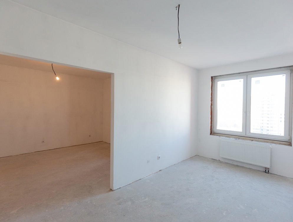 Есть варианты с базовой белой отделкой. В таких квартирах оштукатуренные стены, стяжка пола, гидроизоляция в санузлах, установлена металлическая дверь, выполнена электроразводка.