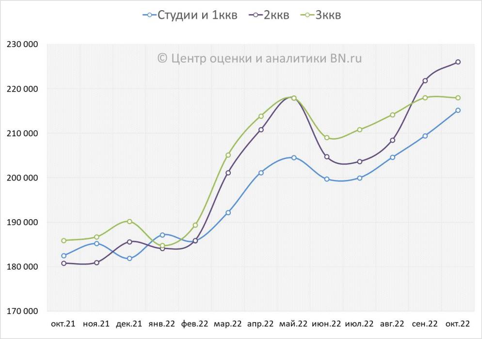 По данным Центра оценки и аналитики BN.ru, средняя цена предложения на первичном рынке Санкт-Петербурга в сентябре увеличилась на 2,37% (это 5 068 руб. с кв. м). К началу ноября она выросла до 218,6 тыс. руб. за кв. м. В расчет не брались новостройки премиум- и элит-класса.