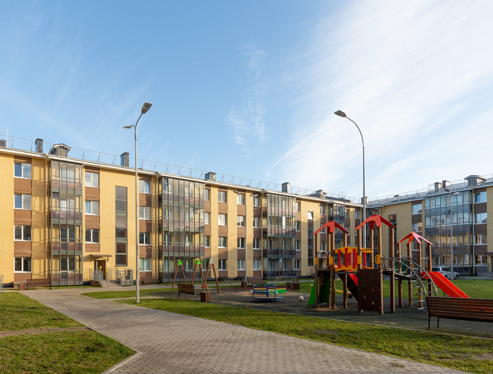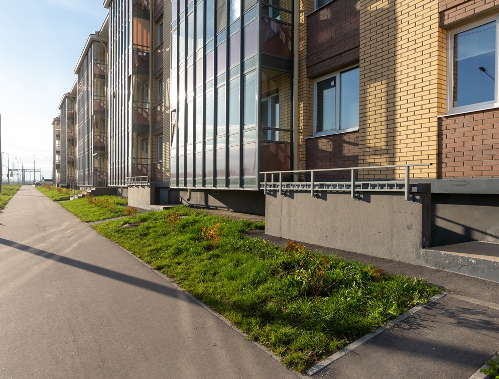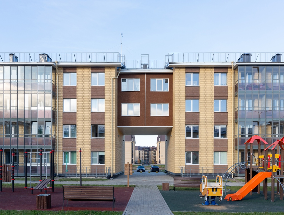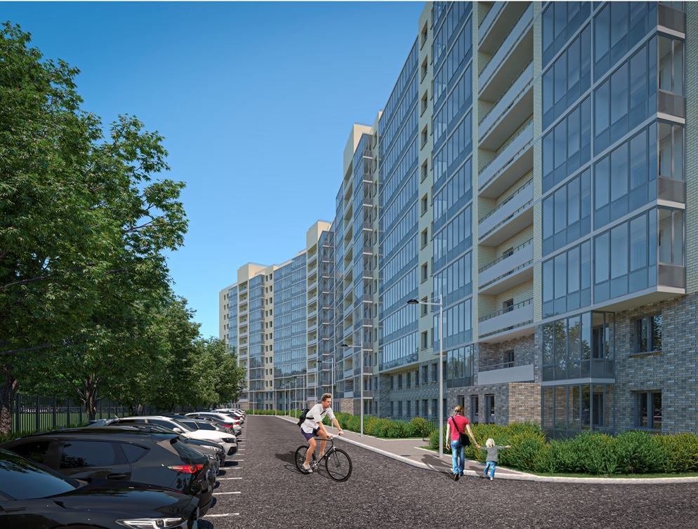 В четырехэтажном ЖК спроектировано 288 квартир – от студий до четырехкомнатных. Диапазон площадей обширнейший – от 19,7 до 121 кв. м. Здания смотрятся стильно: кирпичные фасады, застекленные балконные секции, аккуратная кровля. На территории есть детские площадки и зоны для отдыха, выполнено озеленение, вымощены пешеходные дорожки. Запланировано создание развитой инфраструктуры: школы, детского сада, магазинов, ТЦ, кафе и ресторанов.