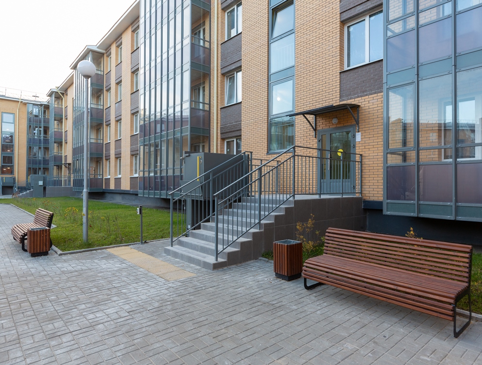 Жильцам понравится просторная и закрытая придомовая территория с благоустроенным двором, детской площадкой и парковкой. Поблизости есть школы и детские сады, аптеки и магазины. Любители более глобального шопинга за 10–15 минут могут доехать до ТРЦ «Мега-Парнас».