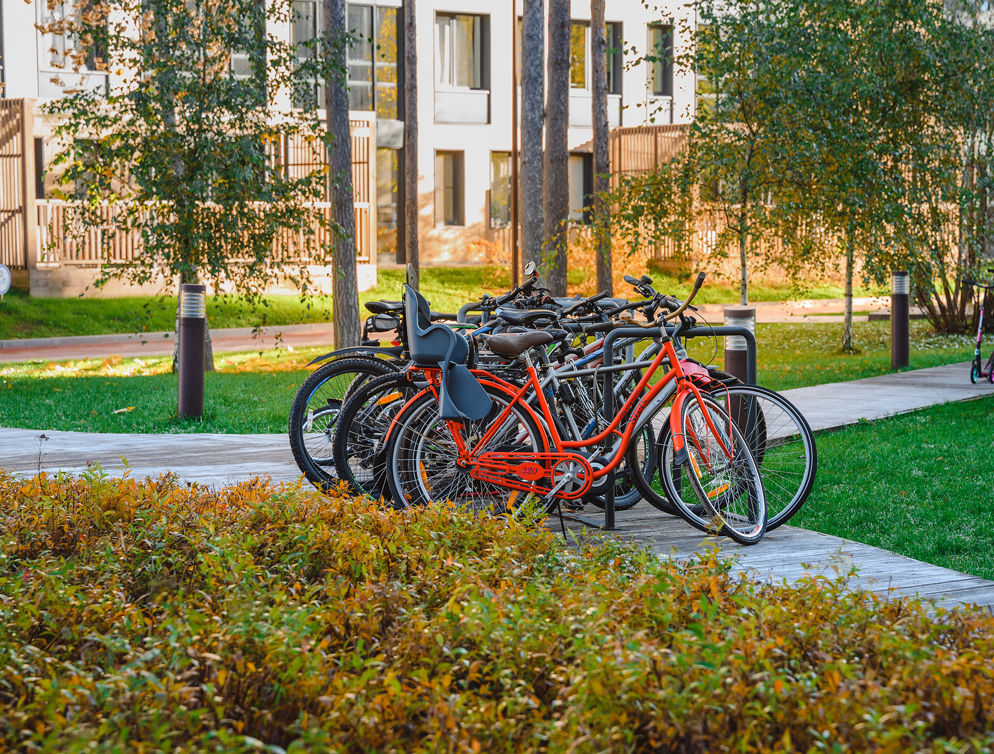 Проекты ландшафтного дизайна и озеленения выполнены именитыми архитектурными бюро, а оформление внутреннего пространства включает всё по максимуму: зоны спорта, детские площадки, велопарковки, беседки, дизайнерские скамейки, малые архитектурные формы и т. д.
