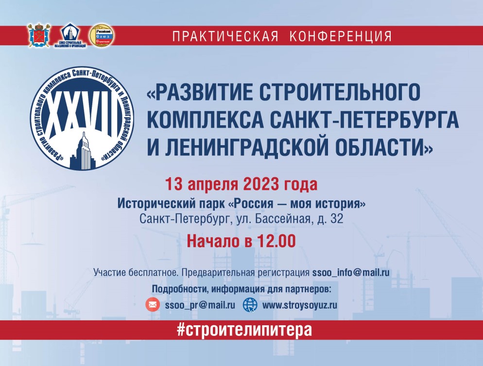 Мероприятие пройдет при поддержке Правительства Санкт-Петербурга и Ленинградской области, Российского Союза строителей.