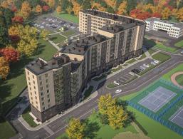 – Четырехсекционный дом с переменной этажностью от 7 до 11 этажей.