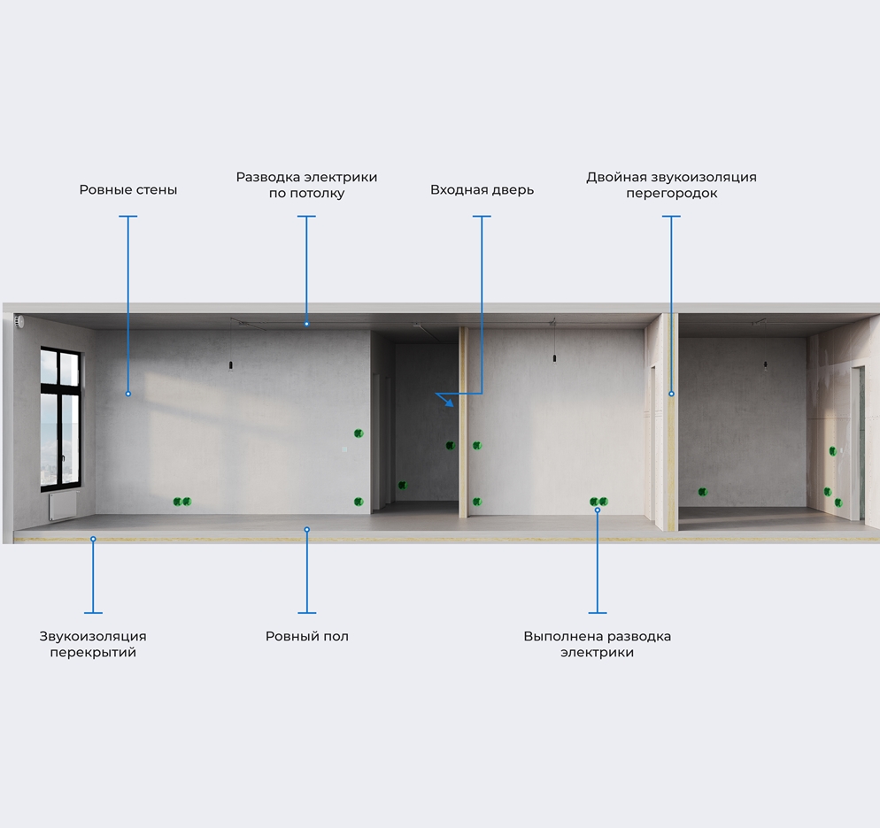 Всё готово для быстрого и качественного финишного оформления. Именно поэтому TechnoBox – это не о готовности к предчистовой отделке, а о полной технологической комплектации квартиры.