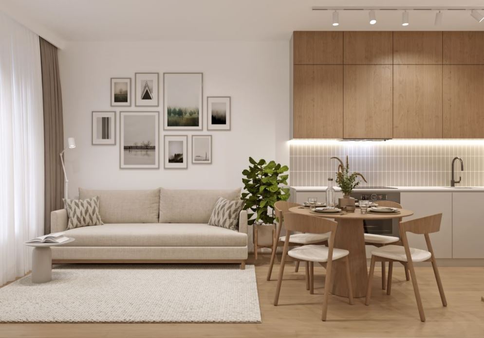 Площадь в квартирах используется рационально. В конфигурации коридоров выделены места для размещения гардеробных, а в санузлах – места под установку стиральных машин. Все квартиры сдаются с полной чистовой отделкой в двух стилистических решениях – светлом стиле на этажах 1, 3, 5 и темном на этажах 2 и 4. Спокойные и универсальные оттенки, тем не менее, можно легко разбавить яркими цветовыми акцентами и подарить каждой квартире индивидуальный стиль.