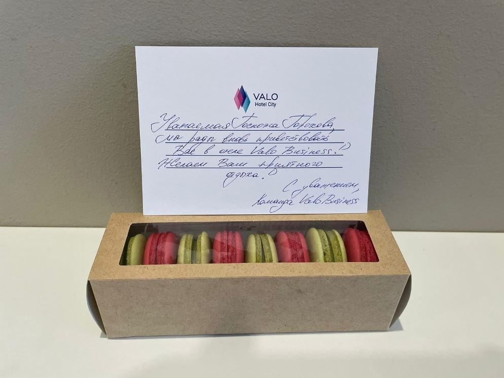 В общем, не надо нервничать. Все ваши проблемы решат, все потери найдут! Сотрудницы ушли, теперь можно и выдохнуть. Включаю телевизор – он приветствует меня по имени. Подключаю вай-фай – интернет отличный, просто летает! Завариваю чай и открываю коробочку печенья макаруни, которая лежит рядом с именной открыткой (отель желает «госпоже Гороховой» приятного отдыха). Такие милые мелочи!