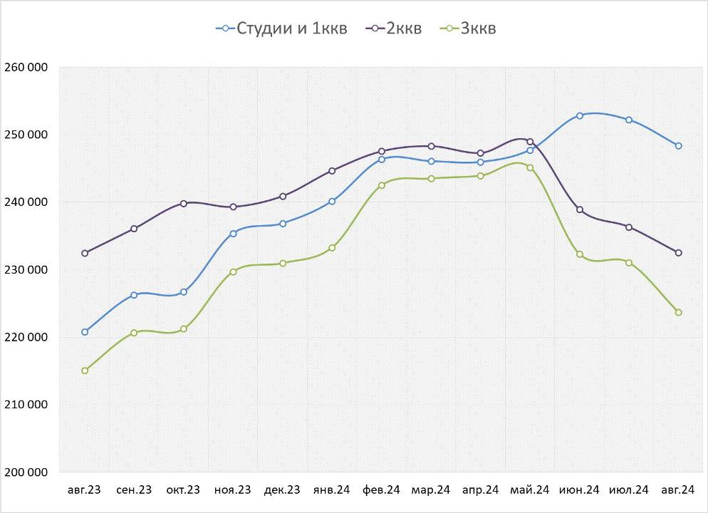 | Тип квартиры | Цена | Июль 2024 | Август 2024 | Изменение за месяц |