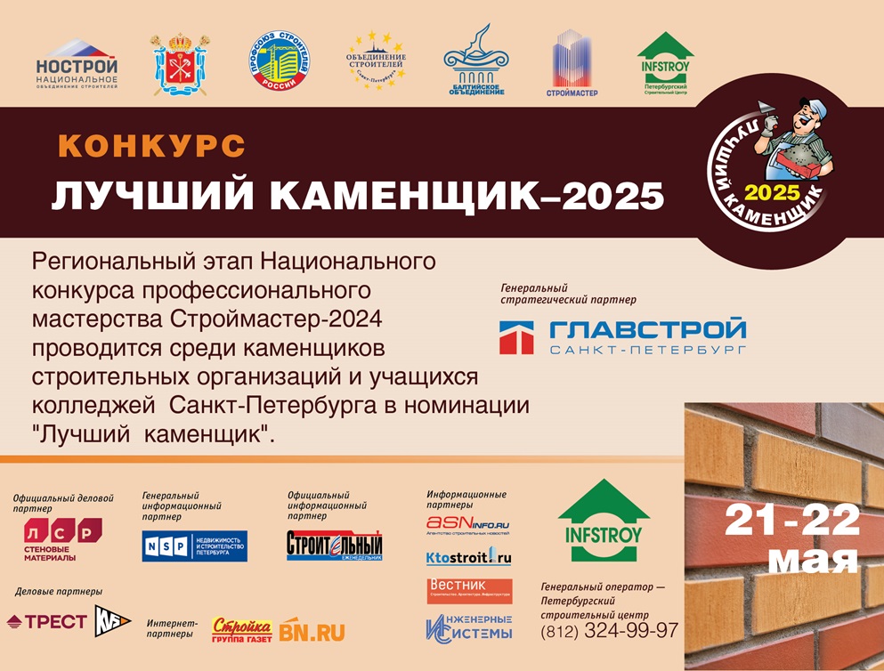 Практическая часть конкурса проводится 21 мая на строительной площадке генерального стратегического партнера девелоперской компании «Главстрой Санкт-Петербург» на территории строительного городка экорайона «Юнтолово» по адресу: Приморский район, Мшинский переулок. Открытие конкурса в 10:00.