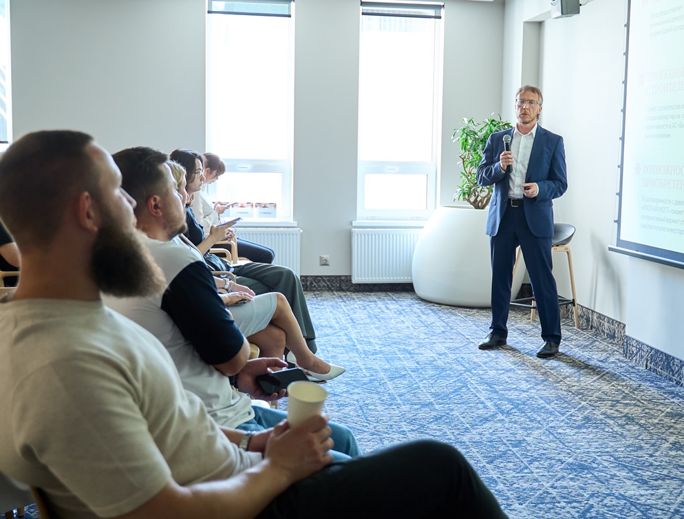 Игорь Ахальцев, директор по продажам MG Development, рассказал о боте-продавце «Сане», основанном на ИИ, который ведет коммуникацию с базой из 10 тысяч клиентов, выявляет заинтересованных и передает их менеджерам. Модель постоянно обучается и улучшает качество общения.