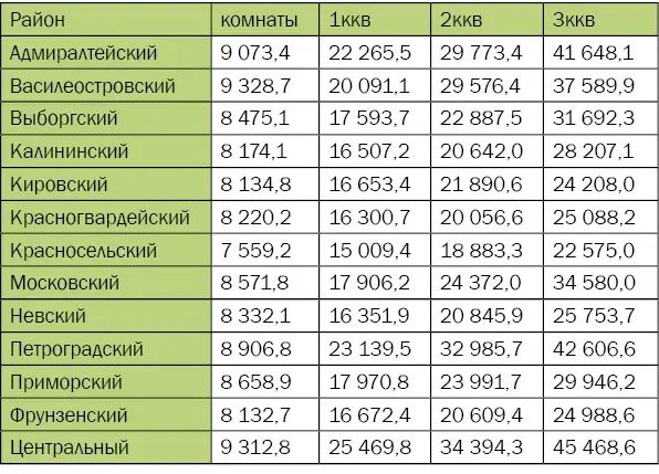 | Средние цены предложения по районам на вторичном рынке жилья |