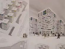 Победителем конкурса стал архитектор Роман Пак, концепция которого предусматривает светодиодную отделку фасадов. Такая технология, по его словам, используется для напоминания об истории места, на котором находился завод «Электрик». По замыслу Романа Пака, плавное смещение оформления окон придает зданиям эффект движения, которое в свою очередь должно поддерживаться «движением цвета» на общей схеме фасадов.