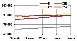 Средние цены предложения на офисные помещения, сфера торговли и услуг