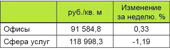 Арендные ставки на офисные помещения, сфера торговли и услуг