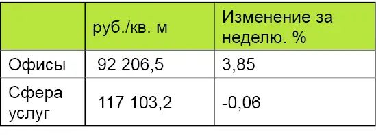 Средние цены предложения на офисные помещения, сфера торговли и услуг