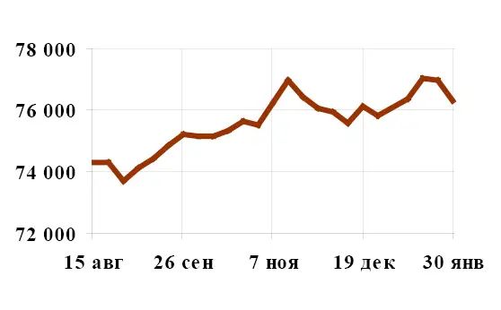 Средняя цена предложения на рынке строящегося жилья за прошедший период понизилась на 0,94% и составила 76 273,7 руб./кв. м. |