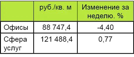 Средние цены предложения на офисные помещения, сфера торговли и услуг